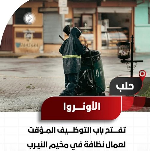 "أونروا" تعلن عن فرص عمل مؤقتة لعمال نظافة في مخيم النيرب